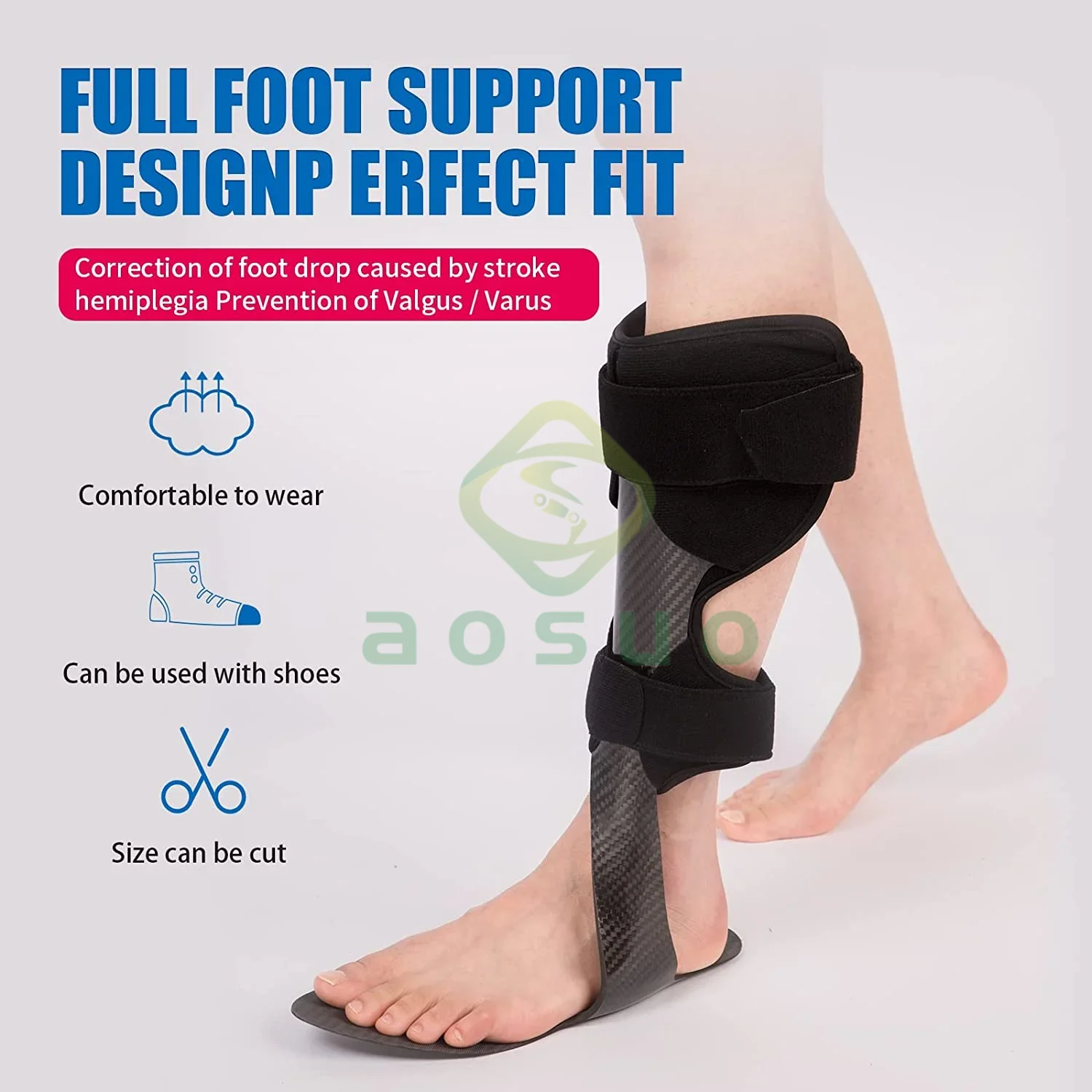 بوليفيا جهاز تقويم الكربون فايبر AFO لدعم الكاحل والقدم، يستخدم في إعادة التأهيل لعلاج مشاكل انخفاض القدم وعدم استقرار الكاحل، معدات علاج الأطراف