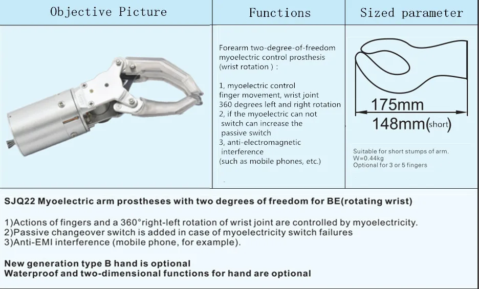 يد صناعية كهربائية عضلية، طرف صناعي كهربائي عضلي للساعد/أطراف صناعية لليد