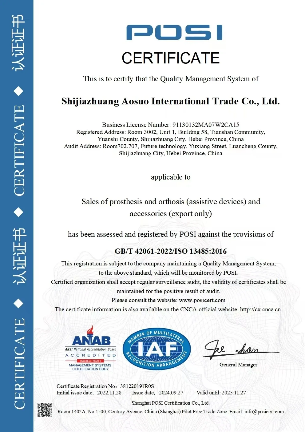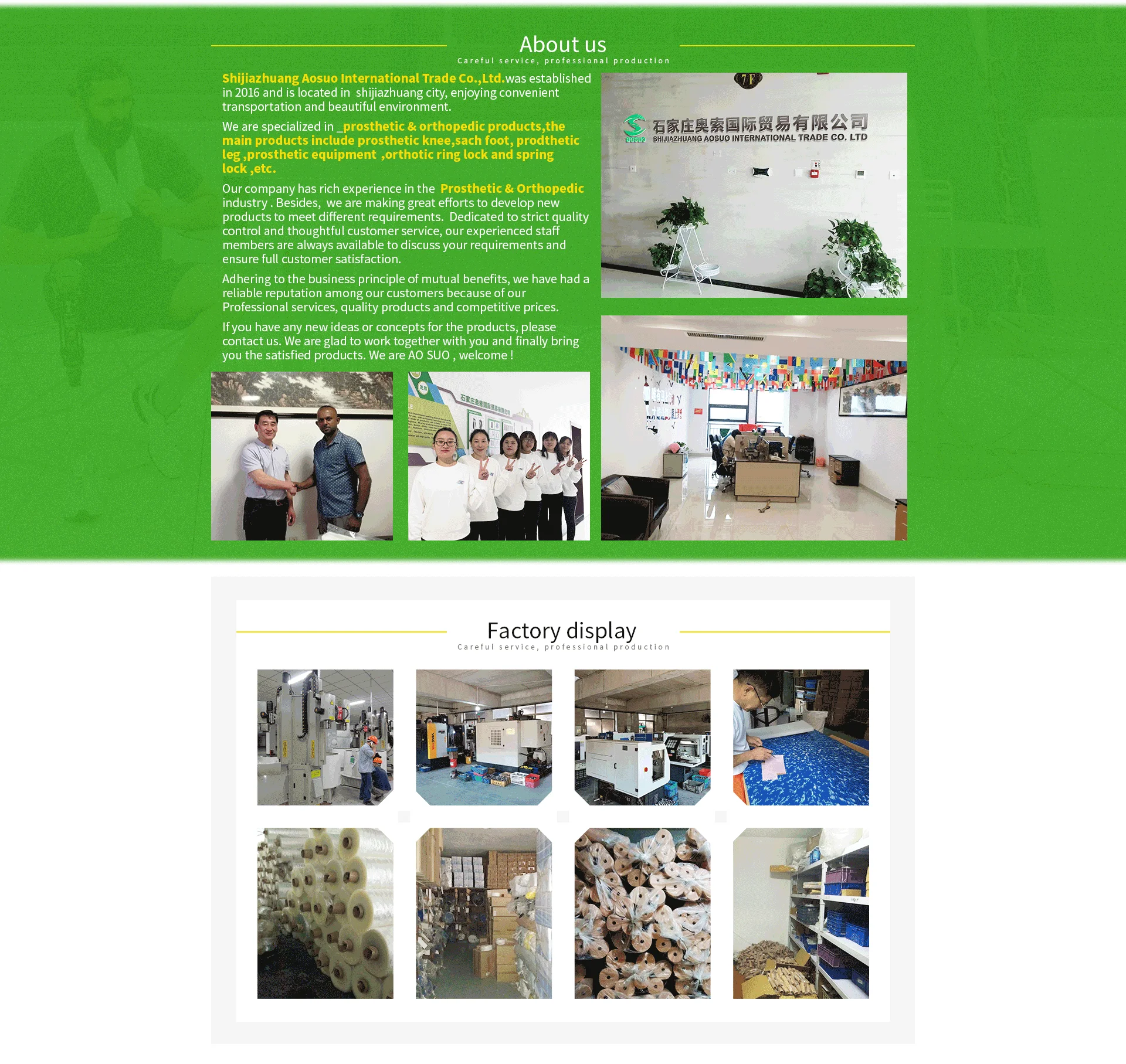 شركة شيجياتشوانغ أوسو للتجارة الدولية، المنتجات الرئيسية هي جميع أنواع منتجات التقويم والأطراف الصناعية. منتجات الرعاية الصحية.